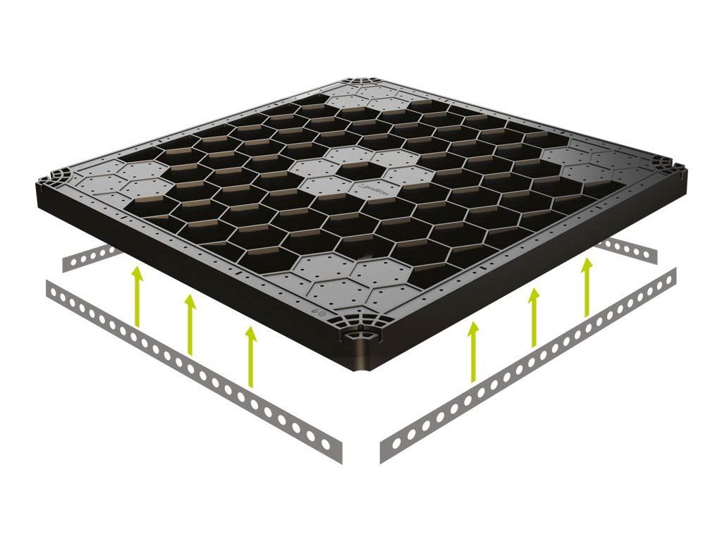 Inovativní systém Uptec SUPATRAY je precizně navržen tak, aby poskytoval univerzální a odolné řešení pro zdvojené podlahy, a to především za účelem ochrany před zraněním v přípaSafetydě prasknutí dlaždice. Díky voštinové struktuře a praktickým rozměrům 598 x 598 x 38 mm vytváří pevnou podkladovou konstrukci pro jakýkoli projekt zvýšené podlahy.
